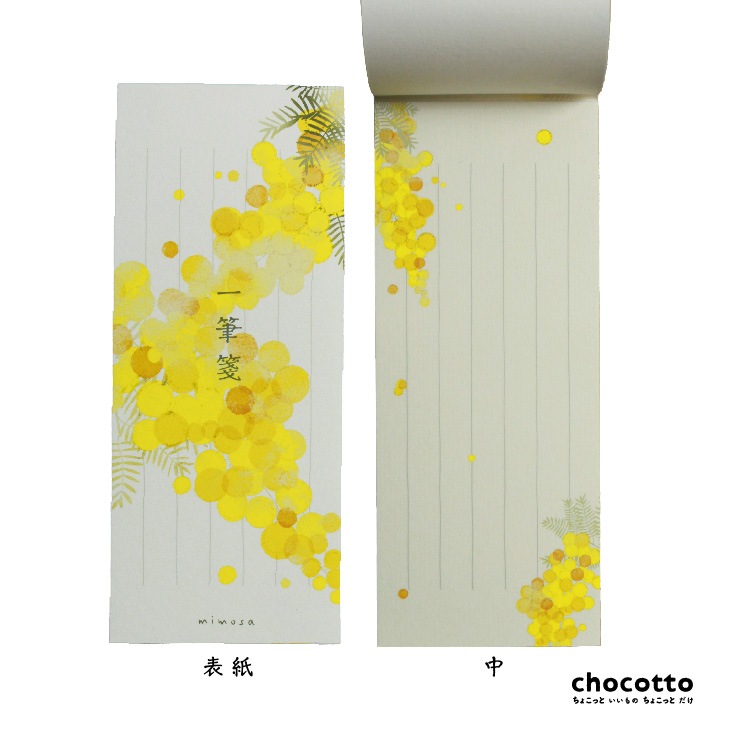 - やわらかなミモザの花が、心を和ませてくれる一筆箋です。