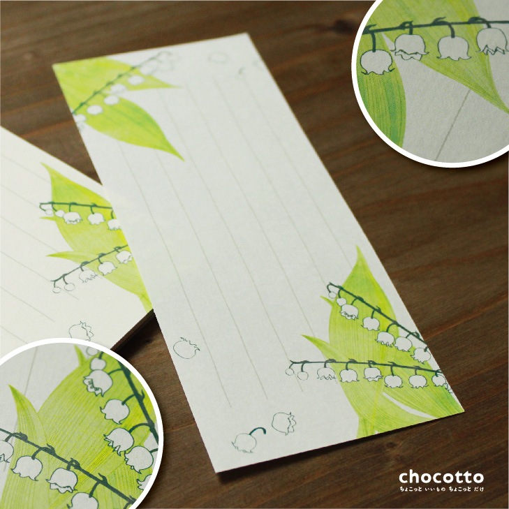 - 白と緑が涼やかなスズランが気持ちを伝える一筆箋です。